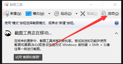 打开截图东西页面,点击选项;