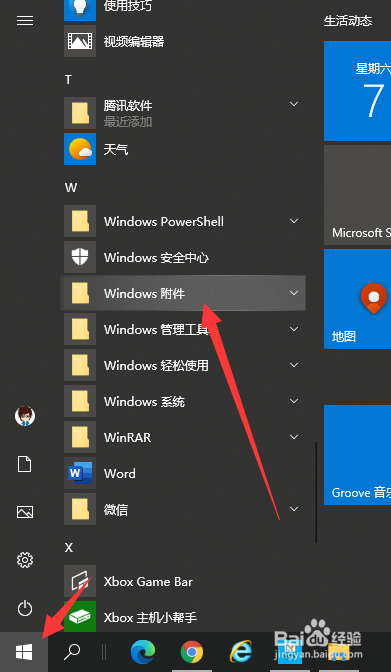 点击桌面左下方起头菜单栏,找到Windows附件;
