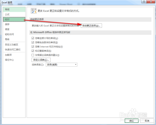 在弹出的对话框中,点击左侧界面中的“校对”,接着点击右侧界面中的“主动更正选项”,具体如图所示:
