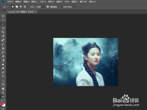 双击PS软件快捷图标,进入PS软件本家儿页并打开一张图片;