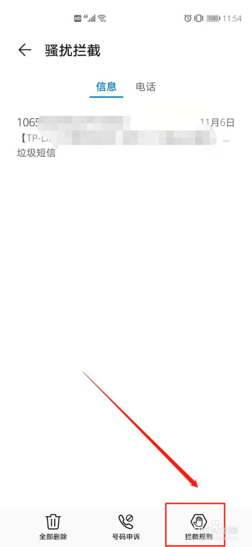 然后进入到骚扰阻挡里,点击右下角的“阻挡法则”。