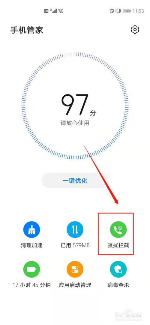 2.随后在手机管家首页,选择“骚扰阻挡”选项。