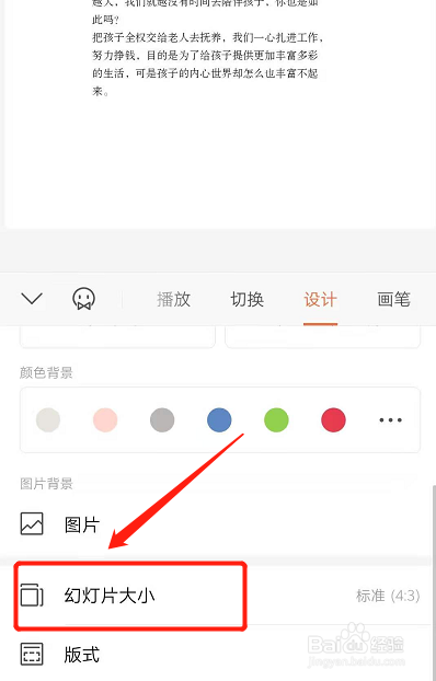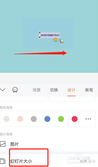 在设计东西下,点击幻灯片大小。