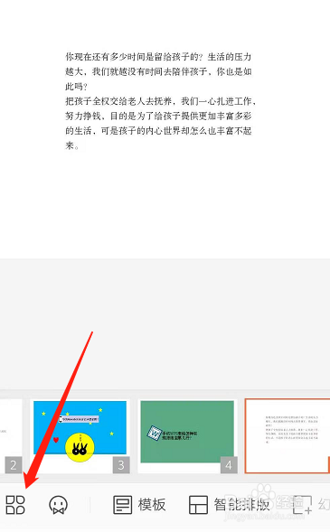 此时PPT就会显示当前需要设置大小的页面,点击下方的东西图标。