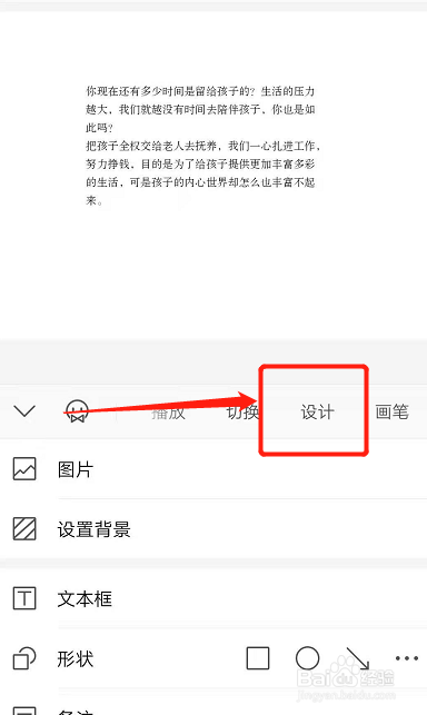 在东西栏处标的目的右滑动,点击设计。