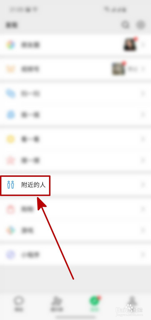 进入发现页面之后,点击页面菜单中的“四周的人”。