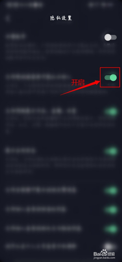 隐私设置中绿色代表开启,反之灰色代表封闭。