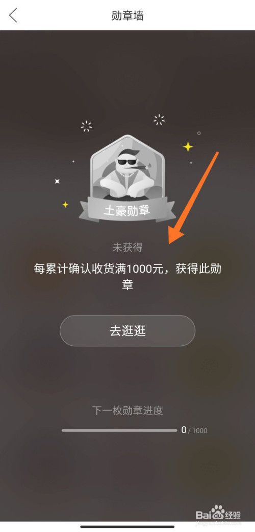 当您的消费金额,累计到1000元时,将会点亮勋章。今朝可看到消费金额进度。