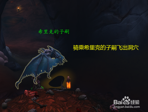 第三步,骑乘希里克的子嗣飞出希里克的巢穴。