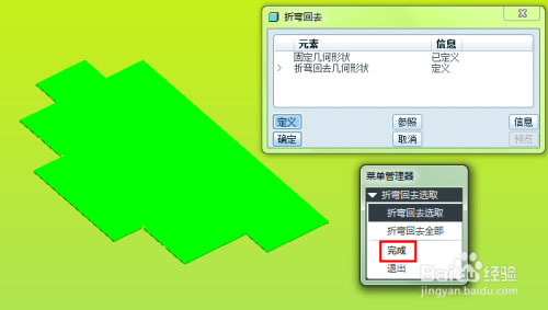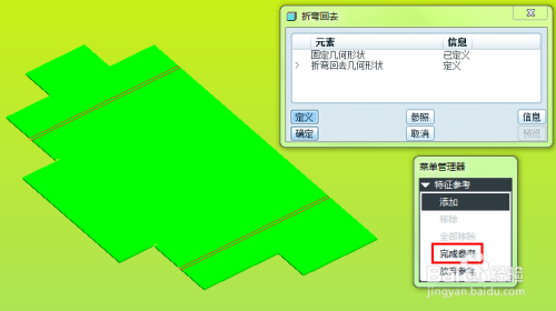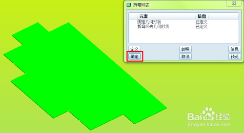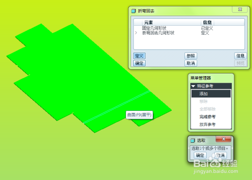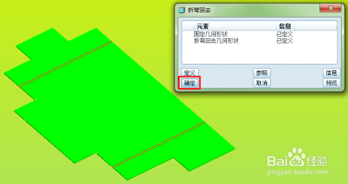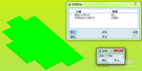 点击完当作参考后,在折弯归去对话框点击确定,可以看到成果显示我们选择的两处展平几何都折弯归去了。