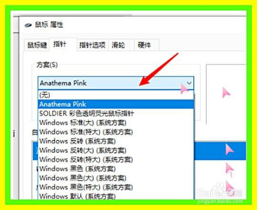 然后选择方案,可以经由过程相关的美化网站,安装鼠标指针即可。