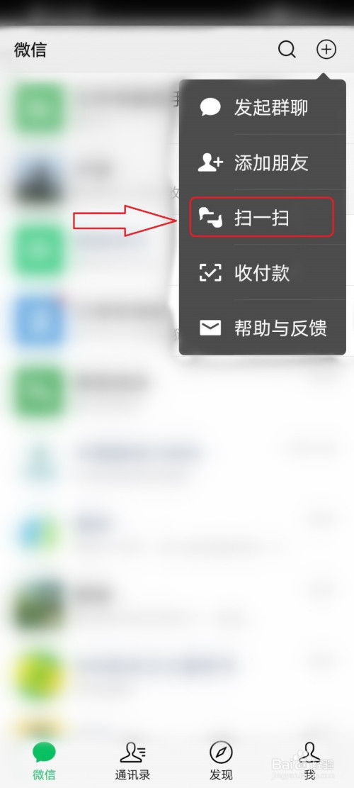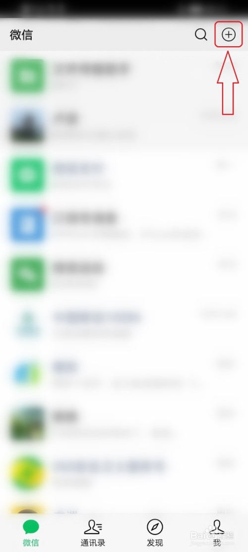 打开微信app首页,点击右上角的【+】。