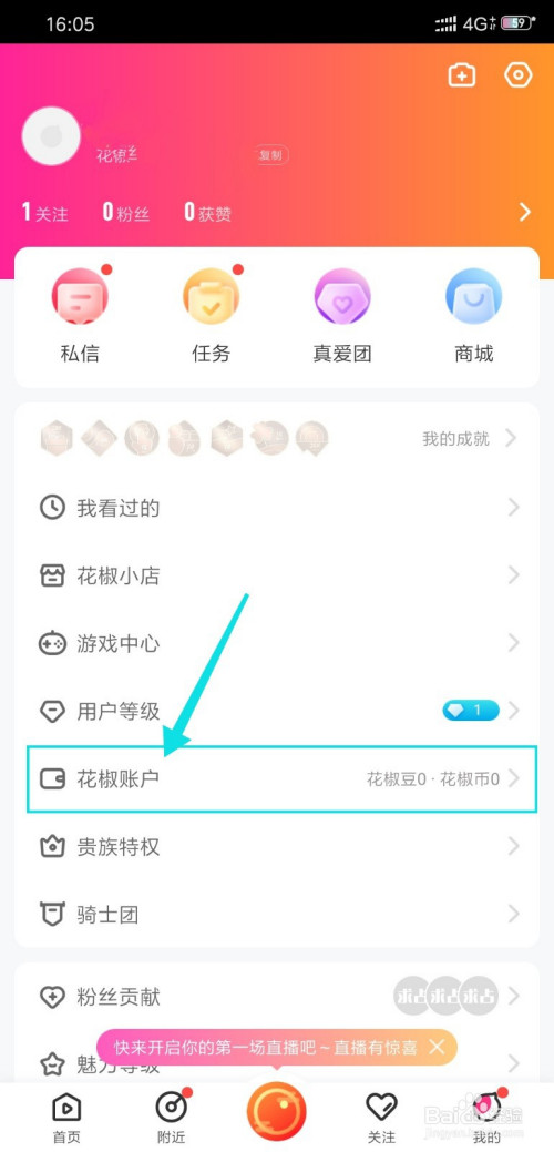 第二、在花椒直播我的页面点击打开“花椒账户”;