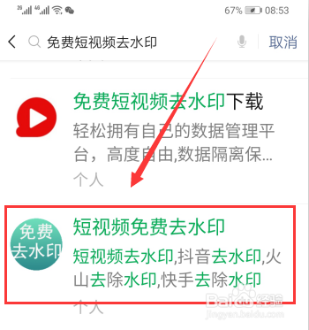 3、微信搜刮“免费短视频去水印”进入小程序。
