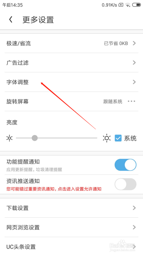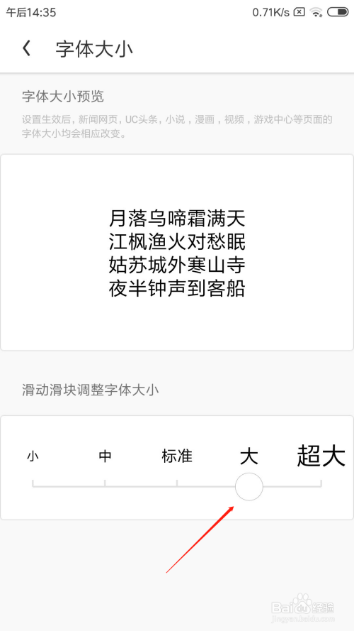 在设置爹戴字体大小的页面中,滑动滑块到大的下面。