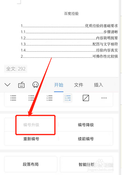 若是需要进级,同样的点击该文字,点击编号进级即可。