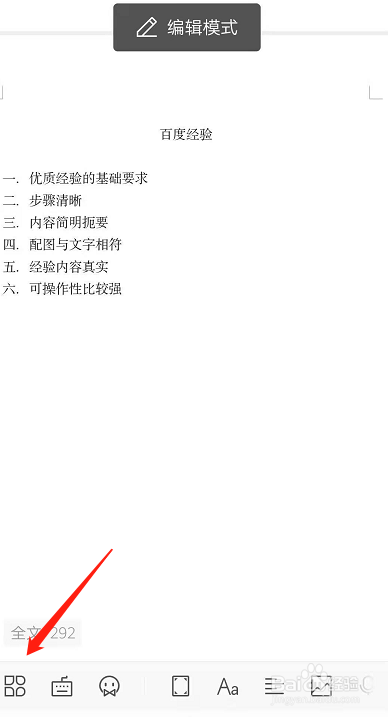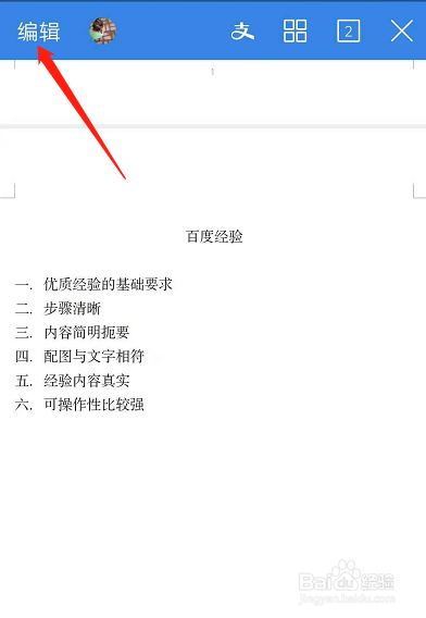打开手机WPS文档,点击编纂,进入到编纂酱随模式艳捧番。