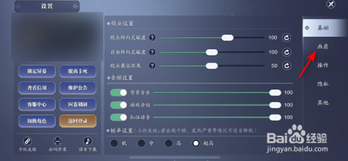 然后点击画质。