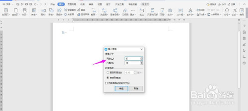 插入“5列;10行”表格,点击“确定”