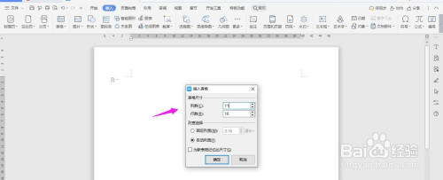插入“11列;10行”表格,暗颂点击“确定”