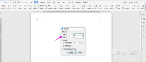 插入“8列;10行”表格,点击“确定”
