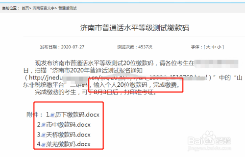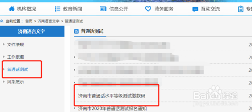 再点击通俗话测试,右侧再点击济南市通俗话程度品级测试缴条目码。