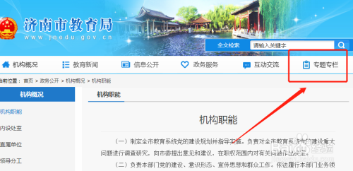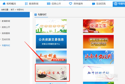 进入济南教育官网后,点击切换到专题专栏游帮。
