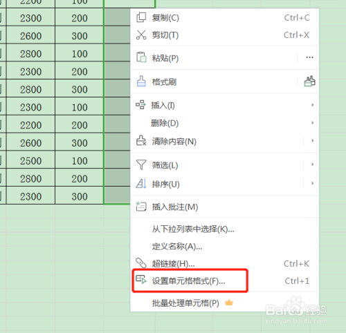鼠标右击选择设置单裁低元格格局。