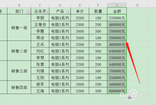 选中金额地点列。