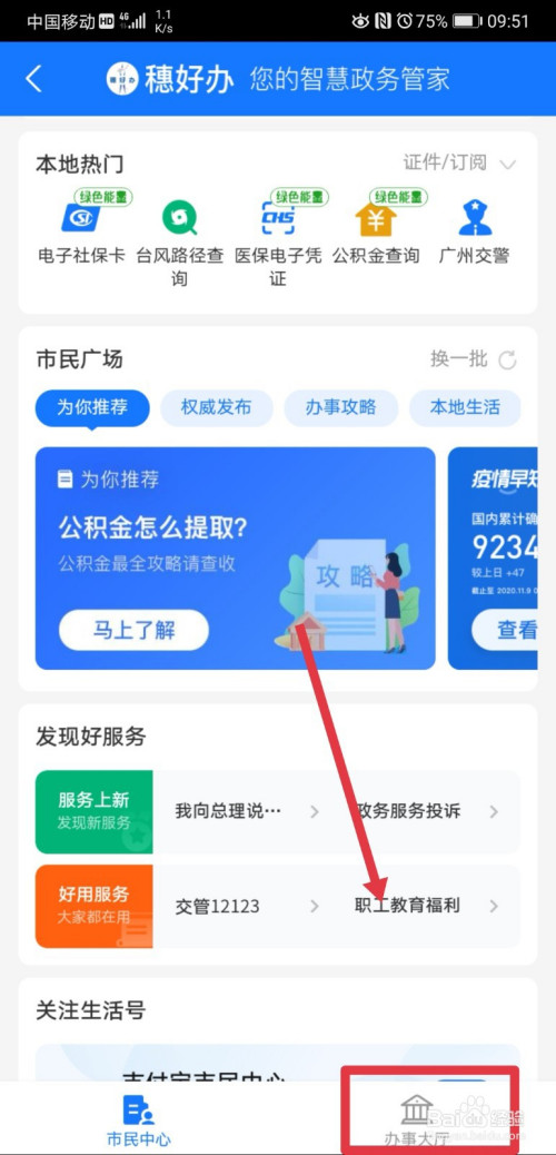 然后再在市民中间页面,点击进入处事大菊肤厅;