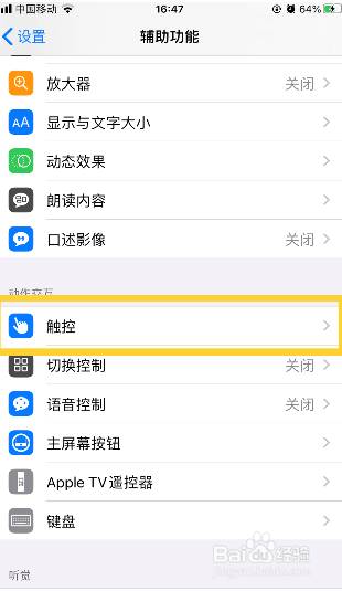 再选择点击触控选项。民蚊