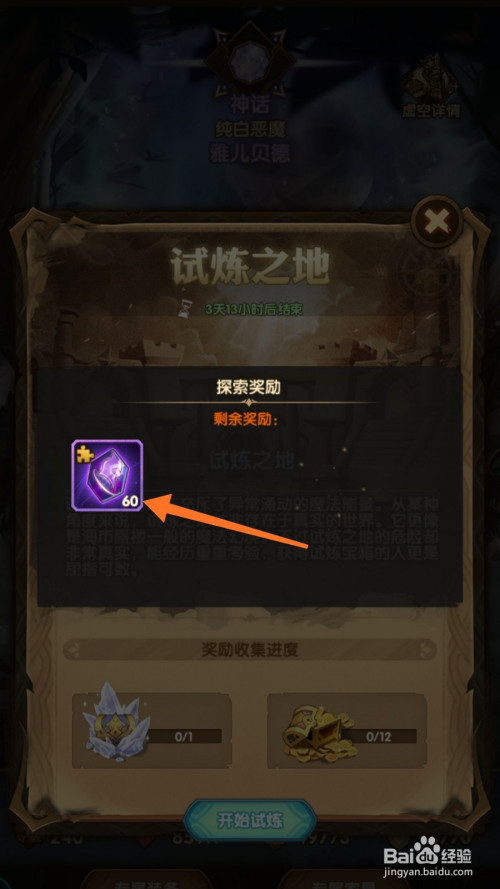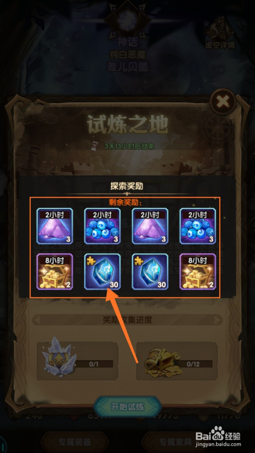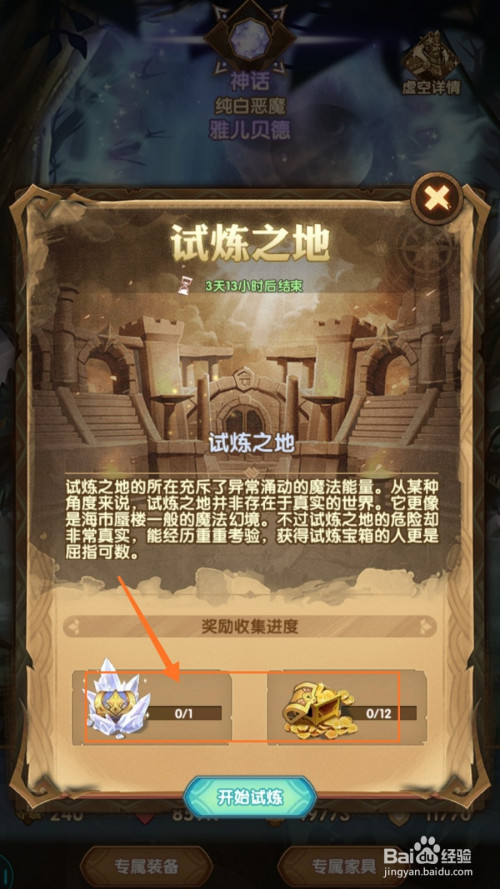 弹出雅儿贝德试炼之地的奖励收集进度,点击宝箱;