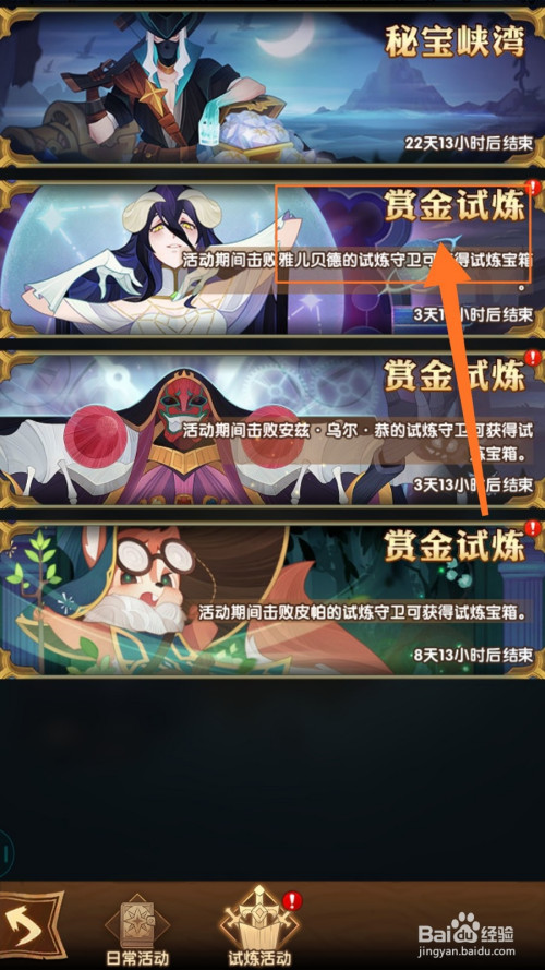打开试炼活动,点击进入雅儿贝德的赏金试炼;