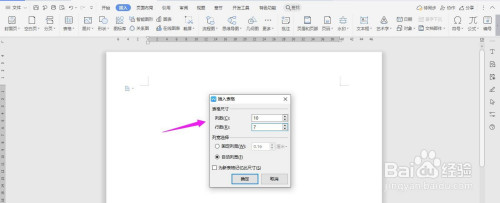 打开Word文档,点击导航栏上的“插入-表格”,选择“插入表格”