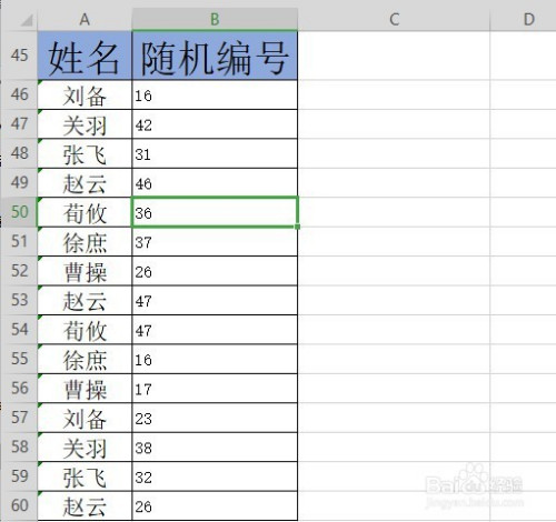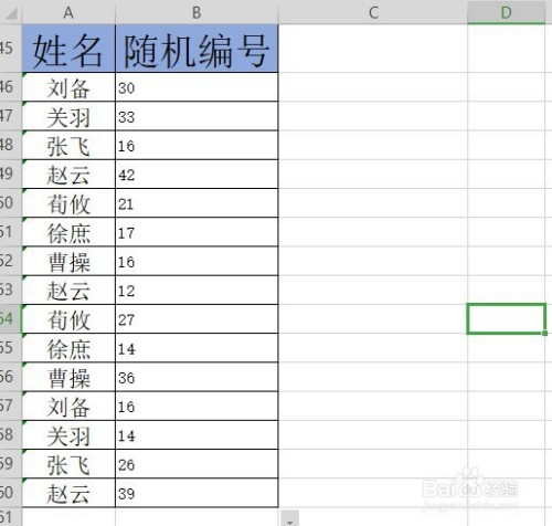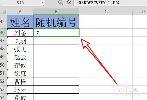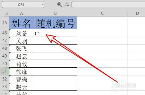 按下回车可以看到当前表格会生当作第1个随机编号。