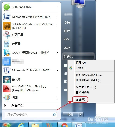 右击“计较机”后选择“属性”即可打开系统参数窗口。