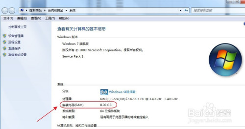 在打开的“系统”窗口中,可以看到关于电脑的一些根基信息,包罗计较机名称、Windows版本、处置器类型等参数,当然也付艺可以查询的到安装内存的大小。