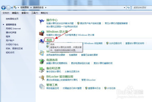 在打开的“系统和平安”窗口中,找到并点击“系统”。