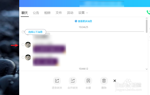 在聊天窗口空白位置距脾沫鼠标右泛陕键单击,弹出对话菜单,选择多选兼之选项;