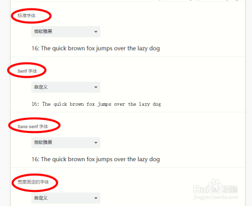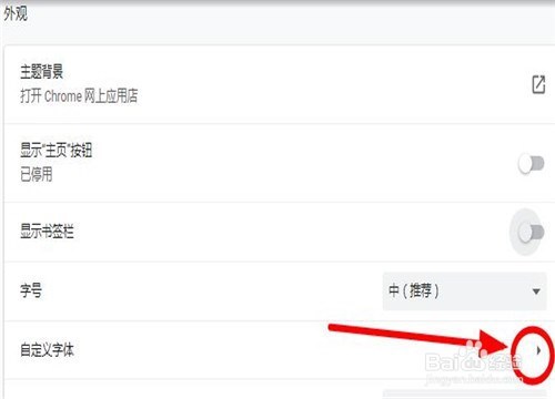 在右边窗口,【外不雅】选项组下,选择【自界说字体】后面的下拉箭头点击