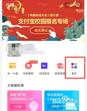 进入校园页块物面后点击更多。