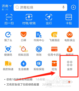 打开支付宝首页,点击全数。