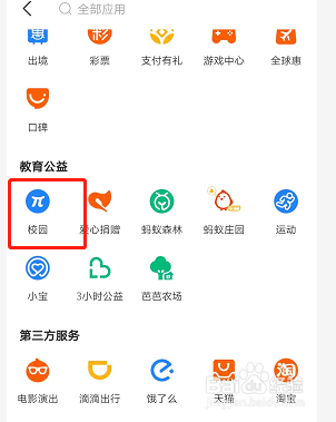 在教育东西下,点击校园。