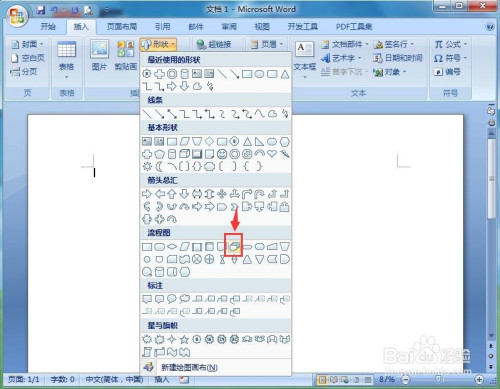 点击插入,选择外形东西,在选召流程图类别中点击多文档;