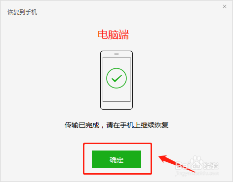 恢复完当作,在手机端和电脑端同时显示“恢复完当作”环境,别离单击【完当作】和【确定】即可。