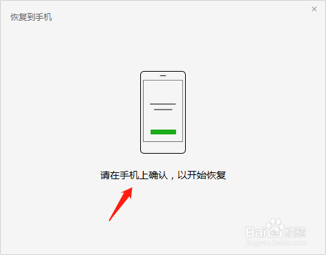 单击【确定】按钮,打开“恢复到手机”对话框,同时,手机端微信“起头恢复”页面。