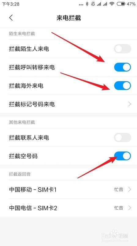 接悦光下来点击来电阻挡页面中的阻挡标识表记标帜号码来电设置项目。