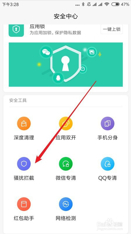 接着在打开的平安中间页面,点击骚扰阻挡的图标。