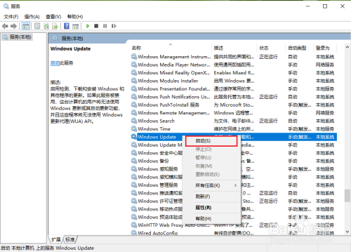 右键点击“Windows Update”,在弹出的菜单中点击【启动】。