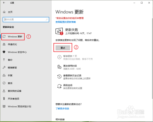 依次点击【windows更新】>>【重试】,然后系统会从头下载和安装更新,请耐烦期待。